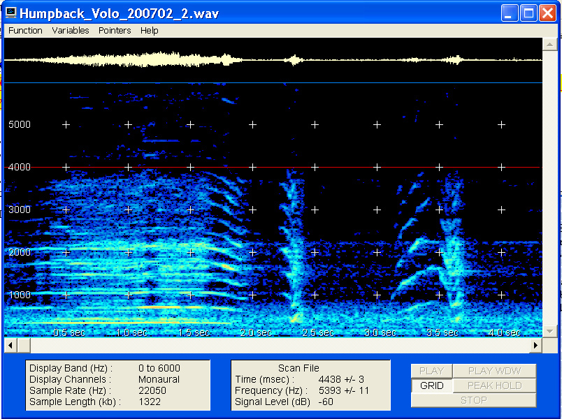 Below is a small portion of the above humpback recording, as analysed by the