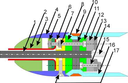 nose cone also provides for entry of the electrical cable and anchoring of the